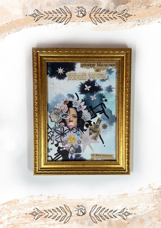 Une grande partie de mes œuvres sont des collages sur aquarelle.